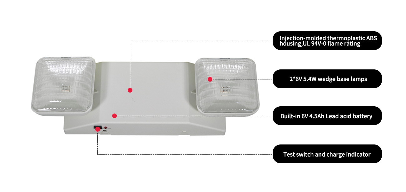 Rumah / Produk / Lampu darurat / Lampu Darurat Kepala Ganda / Jeu1 2x5.4w lampu darurat pijar