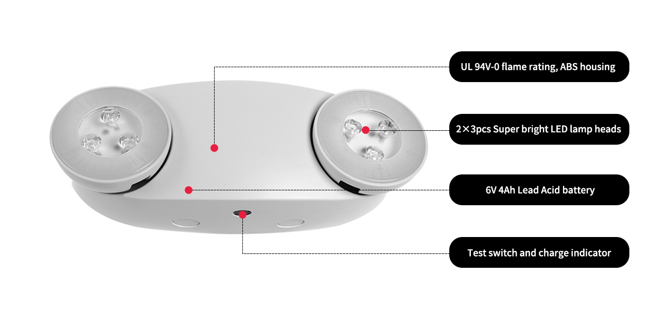 Rumah / Produk / Lampu darurat / Lampu Darurat Kepala Ganda / Jleu6 ul/cul 600lm output tinggi lampu darurat kepala ganda