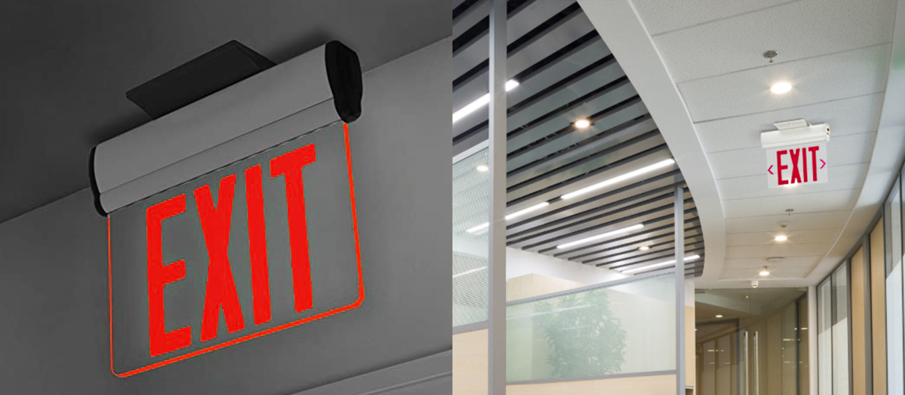 *Illumination - Seri tanda keluar yang menyala tepi ini memberikan iluminasi yang dipimpin umur panjang. Unit ini dibangun dengan papan LED output tinggi merah.  Konsumsi energi dinilai kurang dari 4 watt untuk unit model AC saja. Unit cadangan baterai konsumsi energi dinilai kurang dari 1 watt.