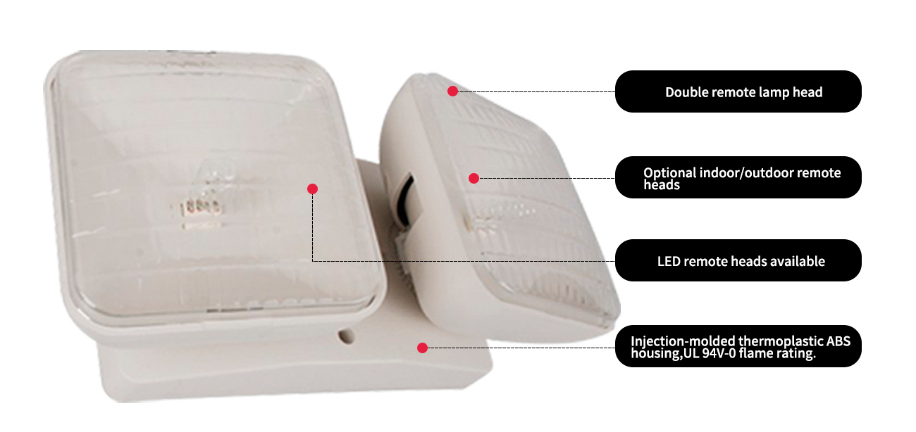 Rumah / Produk / Lampu darurat / Kepala Remote Lampu Darurat LED / JRH-2-UL 94V-0 Peringkat Api Kepala Lampu Jauh Ganda