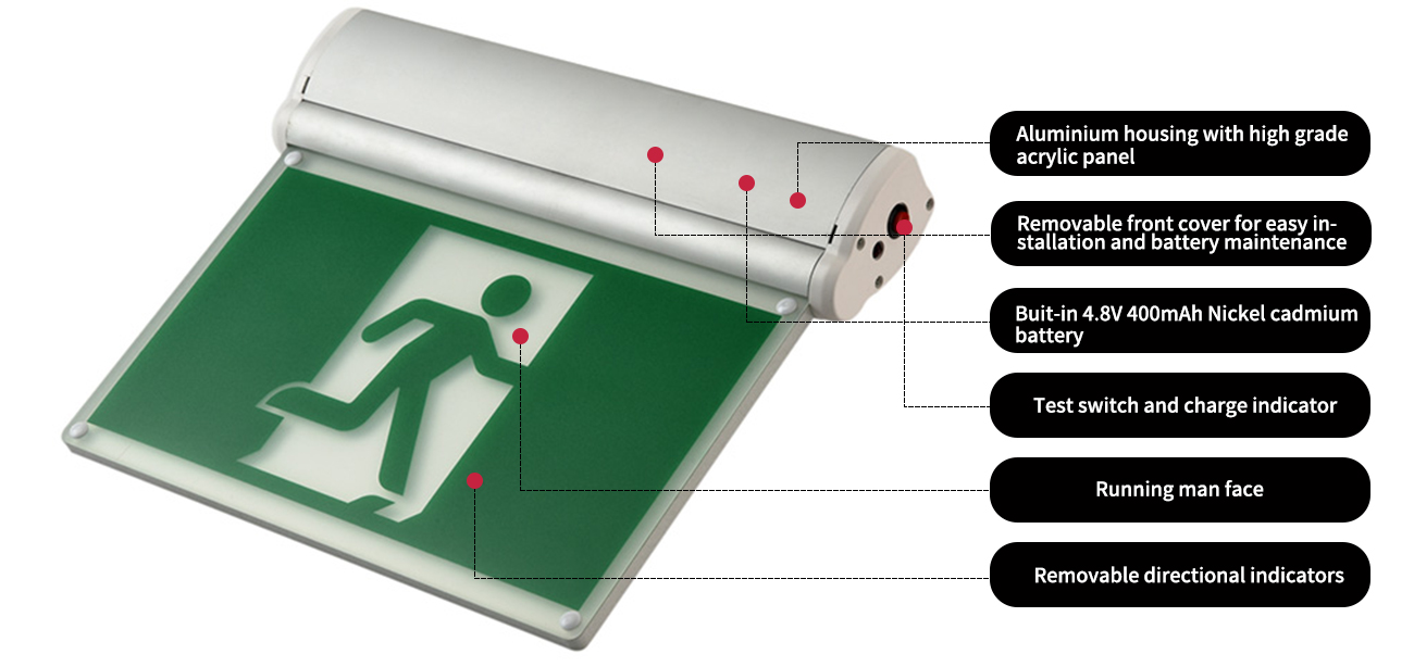 Aluminium 6 Inch Running Man LED Darurat Tanda Exit CSA Bersertifikat