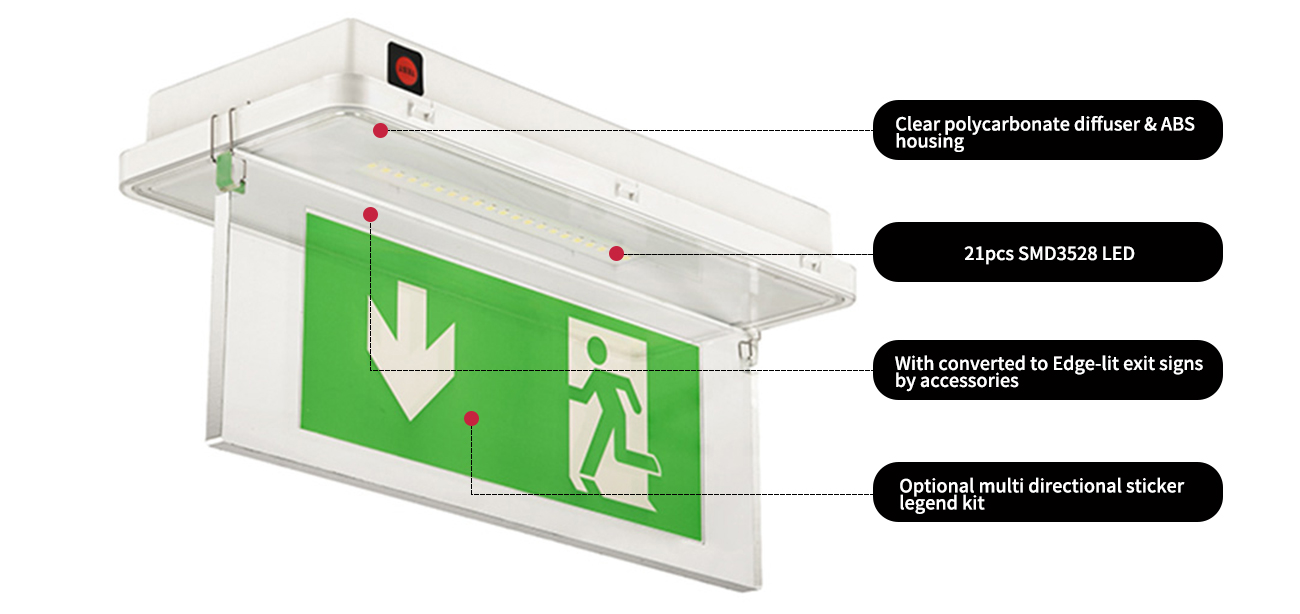 SMD 5050LED*12pcs , 2.5W, 3.6V 1.8Ah Ni-Cad Batter, PS Exit Sign Panel